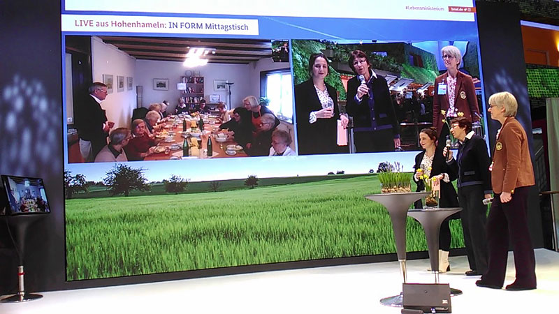 „Udos-Kochclub“ präsentiert sich auf der Internationalen Grünen Woche (IGW) in BerlinDie Generationenhilfe Börderegion e. V. aus Hohenhameln war von der Bundesarbeitsgemeinschaft für Seniorenorganisationen (BAGSO) eingeladen, das Mittagstischangebot des Vereins „Udos- Kochclub“ auf der Internationalen Grünen Woche in Berlin vorzustellen. Auf der Bühne in der Halle des Bundesministeriums für Ernährung und Landwirtschaft war Gisela Grote als Vertreterin des Vereins anwesend, um darüber zu berichten. Zusätzlich gab es zwei Liveübertragungen direkt aus Hohenhameln, von wo aus das Küchenteam und die Essensrunde zugeschaltet waren. |