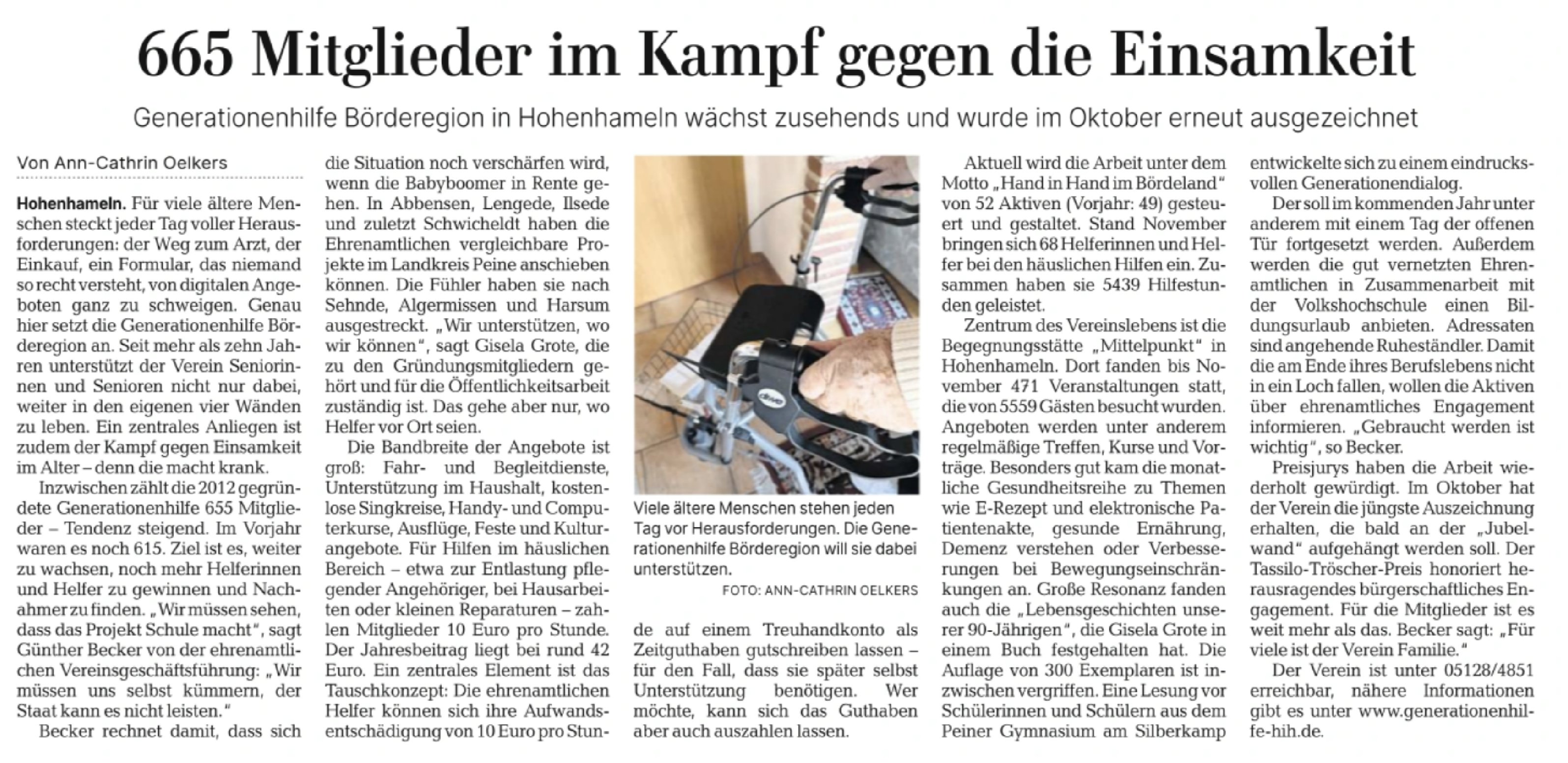 PAZ vom 12.03.2019: Generationenhilfe Mitglied beim Paritätischen |