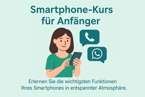 Sie möchten Ihr Smartphone endlich sicher und entspannt nutzen? In unserem neuen Einsteigerkurs lernen Sie Schritt für Schritt die wichtigsten Funktionen kennen – von den Grundeinstellungen über Telefonie und WhatsApp bis hin zu Fotos, Apps und sicheres Surfen.